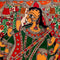 An epitome of tremendous force and energy, the female goddess Mahakali is being depicted dancing over the sleeping Shiva. The Goddess is wearing the garlands of human skulls and her black figure and the bulging lip show an element of awe and ferocity. The sleeping Shiva symbolizes ignorance as surrounds our life. Her body is painted black and every part of the body is being given a detail and refine treatment. She represents the darker side of human beings and worshipping her protects us from the evil forces. The painting has some spectacular floral designs on it. There is an interesting story about how Shiva stops Kali from her frenzy. In Kali's most famous myth, Durga and her assistants, the Matrkas, wound the demon Raktabija. But with every blood that is spilt from Raktabija, the demon reproduces a copy of himself. The battlefield becomes increasingly filled with his duplicates. Durga, in dire need of help, summons Kali to combat the demons. Kali destroys Raktabija by suckling the blood from his body and putting the many Raktabija duplicates in her gaping mouth. An overjoyed Kali starts dancing on the battlefield, stepping on the corpses of the slain. Her consort Shiva lies among the dead beneath her feet. Kali, becoming drunk on the blood of her victims on the battlefield, dances with destructive frenzy. In her fury she fails to see the body of her husband Shiva who lies among the corpses on the battlefield. Ultimately the cries of Shiva attract Kali's attention, calming her fury. As a sign of her shame at having disrespected her husband in such a fashion, Kali sticks out her tongue and stops her frenzy.