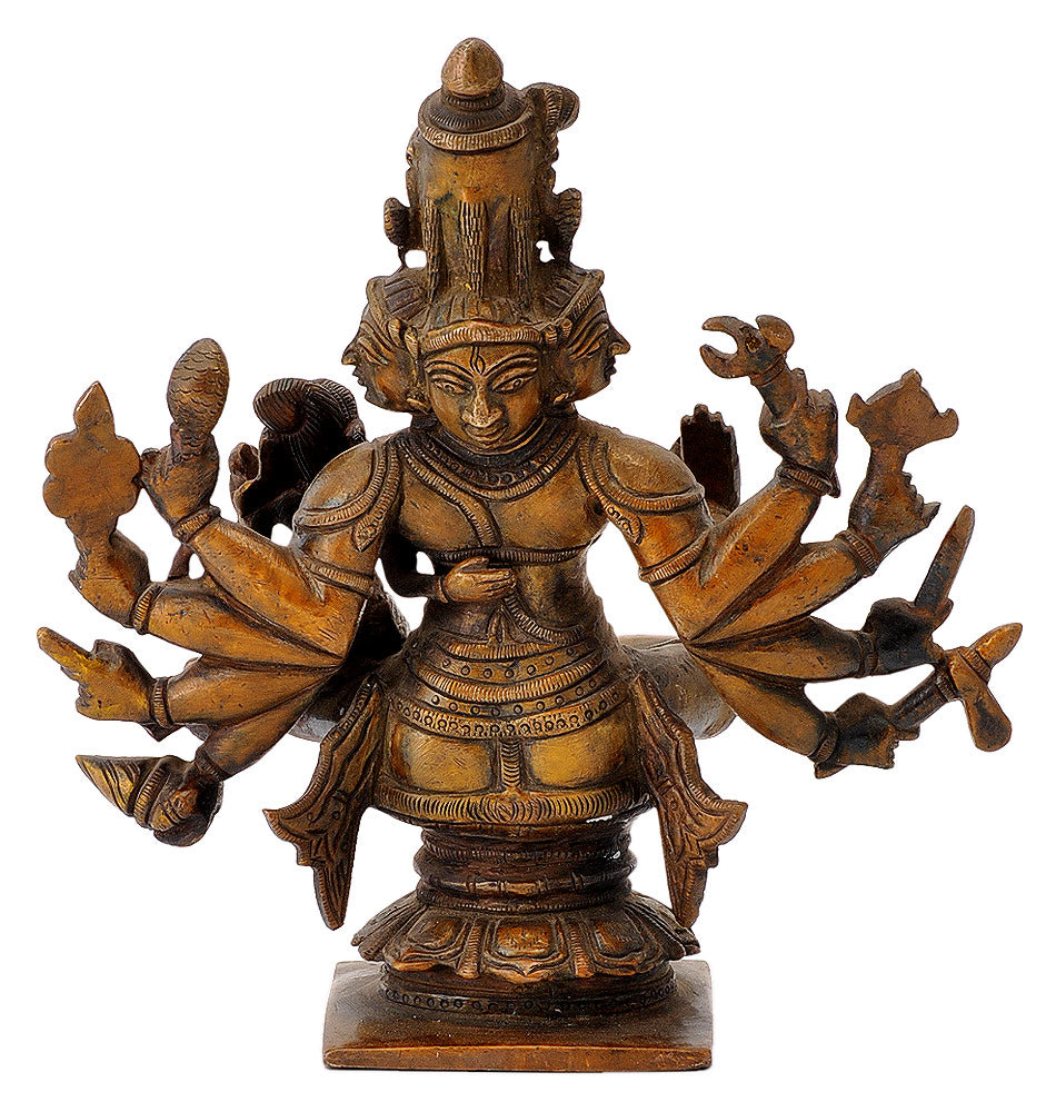 The brass figure of antiquated five headed Lord Shiva with Parvati is given a refine and detail touch. Hara-Gauri represents an ideal couple for the Hindus and they have been inspiring millions of Hindu husband and wife by setting a precedent of love, devotion and affection. Lord Shiva is one of the Trinity Gods in Hinduism and is responsible for destruction of evil forces. But this is viewed as a positive element as destruction is an immediate prelude to a new beginning. Lord Shiva and Parvati are worshipped across the country and married couple seek blessings from the deities for a happy and blissful married life.