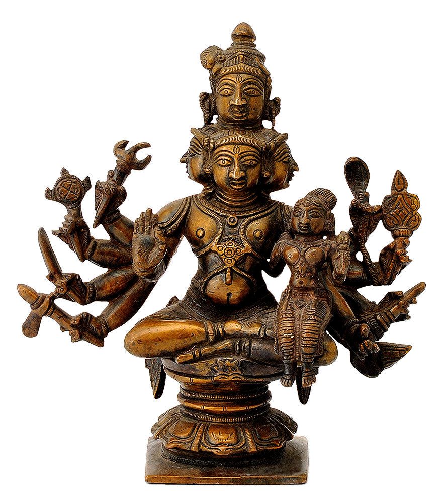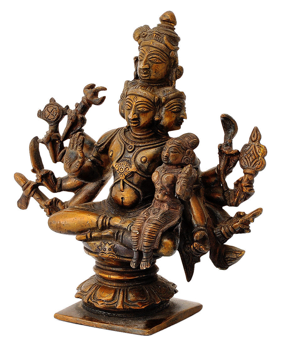 Antiquated Five Headed Lord Shiva with Parvati Brass Statue