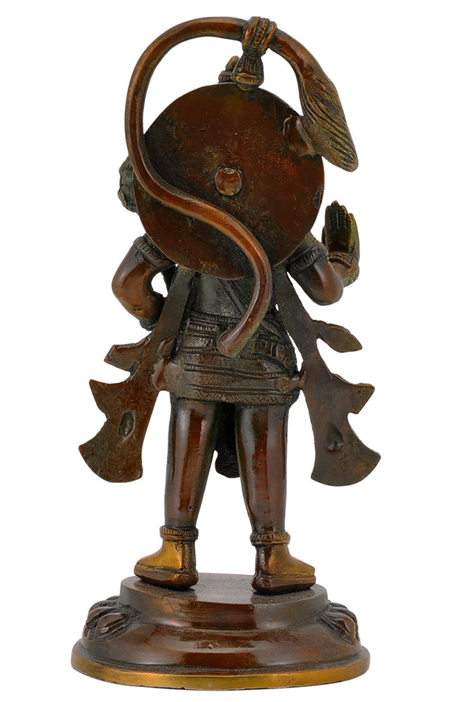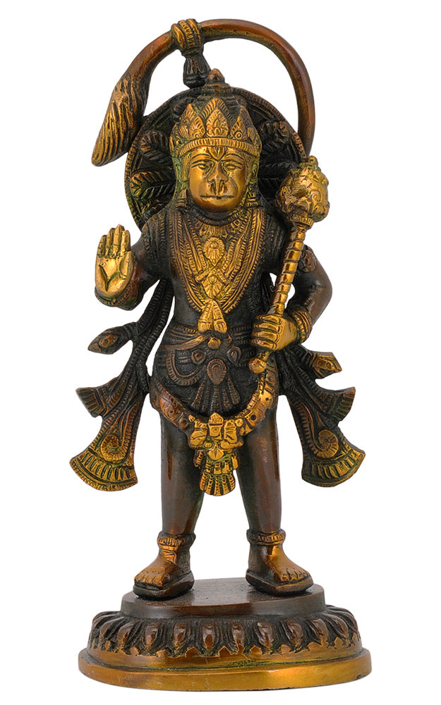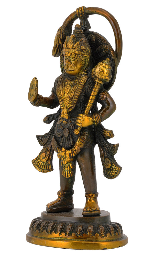 The beautiful brass figure of Lord Hanuman, who is a paradigm of immense strength and unstinted devotion towards Ramchandra, is given a refine and royal treatment. A deeper sense of finesse and refinement is manifest in the figure. Hanuman is holding his weapon and every part of his body is given a minute treatment. He played a pivotal role in rescuing Seeta from the clutches of demon king Ravana. Hanuman's devotion towards Ramchandra is legendary and once he tore apart his chest to show that Lord Ram and Seeta lived in his heart. With his one hand, the Lord is holding his weapon and with his other hand, he is blessing his disciples. His headgear is also given a refine treatment.
