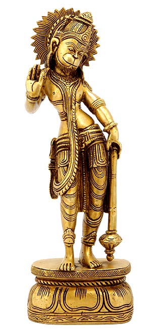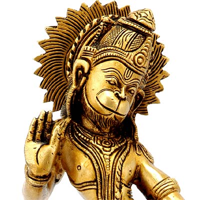 The spectacular brass figure of the Lord Hanuman, the monkey-god in Hinduism, is nicely carved out with a greater sense of finesse and excellence. A true masterpiece itsel, the brass figure reveals a deep sense of devotion and accomplishment as the Lord is standing with His folded hands. The figure reveals a great amount of smoothness. Lord Hanuman is a great devotee of Lord Ram and played a significant role in rescuing Sita from the clutches of demon king Ravana. Whereas the Lord is wearing a loincloth, the headgear is marked by striking carvings on it.