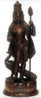 Carved in rose wood this sculpture of lord Murugan or Kartikeya is a fine example of Kerala wooden statuary.Kartikeya is the commander of the gods army.He is the brother of Ganesha and son of Lord Shiva and Goddess Parvati.Displeased over a domestic issue,he took voluntary exile and settled in southern India where there are many temples dedicated to him,there he is worshipped as Subramanya Swami,Standing here gracefully he is blessing his devotees.