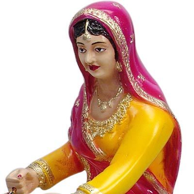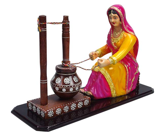 Indian Lady Churning Butter - Resin Statuette
