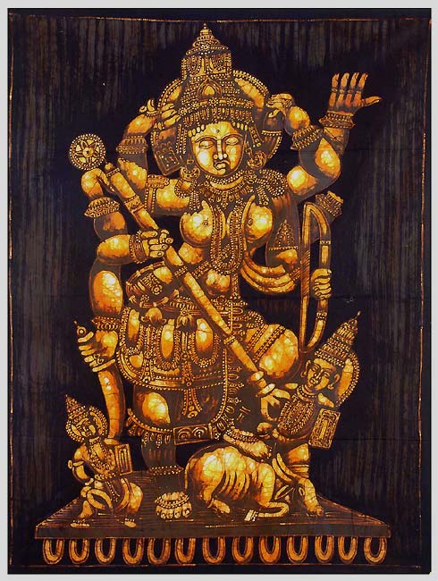 Durga Slays the Demon Mahishasur - Batik Print