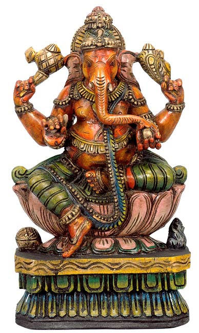 The beautiful elephant-headed god Ganesha is given a nice treatment in this wooden figure. Known as the Agraganya, since he is worshipped first among all the gods, Lord Ganesha is one of the most benevolent gods. He is also one of the most popular gods. Refinement of treatment, precision in execution mark the beautiful piece of work. Lord Ganesha is also known as the Remover of Obstacles as he creates obstacles on our path and removes the same following worship.