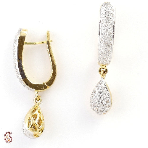 A profusion of ideas, inspiration of beauty. A lovely looking gold plated earring with 40% silver that studded with American diamonds and hanging with teardrop shape. It looks really stunning for any occasion.