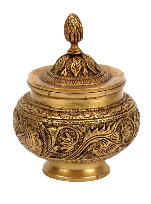 The Gangajali, container of Holy Gangajal has been carved out of brass metal in a most smooth manner. Various natural motifs have been carefully carved out in the pot that are a reflection of the amount of hard work put in by the craftsman. The polished and refined character of the pot is a testimony of the artistic acumen of the creator.