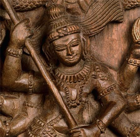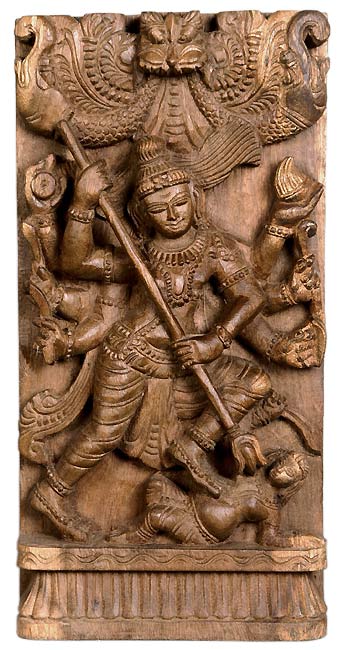 The beautiful wooden figure of Lord Shiva killing the demon is beautifully crafted with some spectacular carvings on it. Lord Shiva is one of the Trinity in Hinduism, the other two being Lord Brahma and Lord Vishnu. Lord Shiva is responsible for the destruction of the universe. But this also has a positive element to it as destruction is also the prelude to new creation.