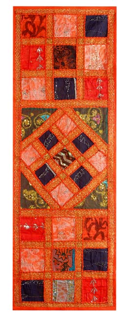 The beautiful wall hanging reflects the lavish beauty of the Gujarati patchwork. Each portion is beautifully patched giving rise to a sparkling effect to the wall hanging. Some beautiful designs have been used to give the work an interesting look. The borders of the wall hanging have been beautifully coloured. The Gujarati patchwork is very popular all over India and the works are hand-made with some sparkling embroidery works.