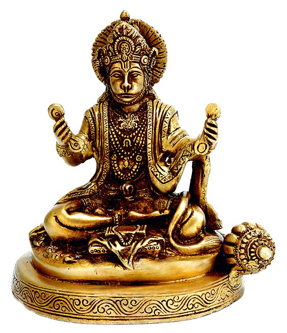 The beautiful brass figure of the Lord Hanuman, the great devotee of Lord Ram, is given a detail and refine treatment with some beautiful carvings on it. Lord Hanuman is a symbol of great devotion and strength. Here the Lord is shown singing the devotional bhajans of Lord Ramchandra. His deep devotion for Lord Ram is legendary and he played a significant role in rescuing Sita from the clutches of Ravana, the demon king.