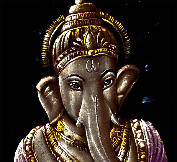 The beautiful velvet painting of the Lord Ganesha is given a refine and detail treatment. The Lord is shown writing the Vedas. He is the lord of wisdom, intelligence, education, prudence, luck and fortune, gates, doors, doorways, household and writing. He is the remover of obstacles, and as such it is normal to invoke him before the undertaking of any task with such incantations as Aum Shri Ganeshaya Namah (hail the name of Ganesha), or similar. When Veda Vyasa was beginning to write the epic Mahabharata, he requested Ganesha to be the scribe. Being playful, Ganesha agreed to be the scribe on one condition - that Vyasa must recite the epic non-stop. Vyasa agreed and thus the great epic of Mahabharata was written by Ganesha
