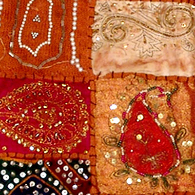 With this extraordinary wall hanging, the artist has conjured the radiance of soil and the nature. Mirror appliqué adds sparkle to a classic Gujarati wall hanging with some lavish embroidery work. Sequins and beadwork embellish the wall hanging. Elaborate patterns that glisten over exotic colours tell the fascinating story of Gujarat’s fabulous textile artistry.