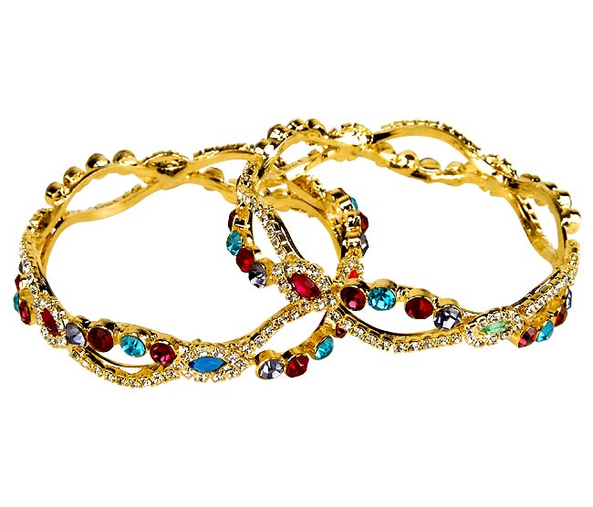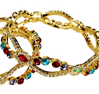Coloured stones are nicely fitted on the metallic bangles with a deep sense of magnificence and elegance. The marvelous ornaments. Crafted with a sense of deep smartness the jewelries are darlings of every woman. The bangles reflect the beauty of jewelry craftsmanship. The jeweler designs the set of sumptuous bangles to highlight the encounter of powerful Indian gems. The jeweler is inspired by the true love of a woman for a man and she is wearing his heart on her hand.