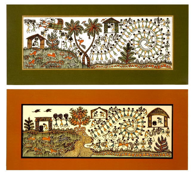 Life in Countryside - set of 2 Warli Paintings