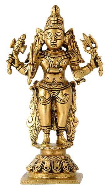 The beautiful brass figure of Lord Shiva, one of the Trinity Gods in Hinduism, the other two being Lord Brahma and Vishnu, is given a resplendent treatment. His body reveals a greater degree of smoothness and grandeur. He is standing tall. Lord Shiva is responsible for the destruction of the Order. But destruction also has an element of regeneration. It is the prelude to a new beginning.