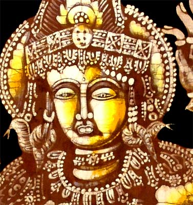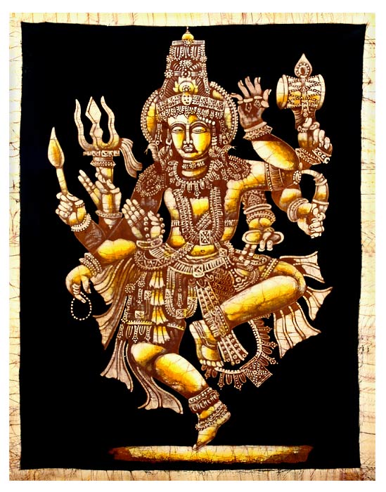 Lord Shiva, the God of destruction, is also depicted as the master dancer. He is called Nataraj, the Lord of Dance and the beautiful Batik painting portrays his image in a classic manner. The heavily ornate body of the Lord swings in the mode of dance and it paints a totally different image of the God who is normally identified with destruction. The method of waxing and dewaxing has given rise to a special effect to the painting.
