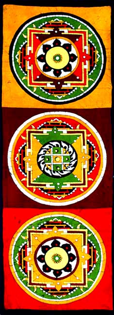The traditional Batik work on Mandals has revealed some of the basic characteristic features of this style of painting popular in West Bengal, Tamil Nadu and Orissa. Use of geometric motifs along with an intelligent depiction of line formations and colour patterns have made the Batik painting a real treat for eyes. The use of square and circular motifs has made the painting very attractive.