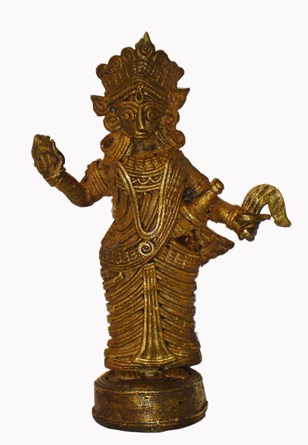 The beautiful figure of mother goddess Dhanalakshmi is given a refine and detail treatment in the traditional dhokra method. Her embellished figure contains lot of ornaments and rich drapery. The goddess of prosperity and wealth is one of the most popular female gods in Hinduism and it is believed that worshipping her brings fortune and wealth.