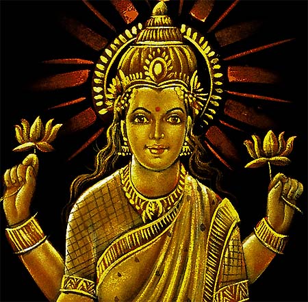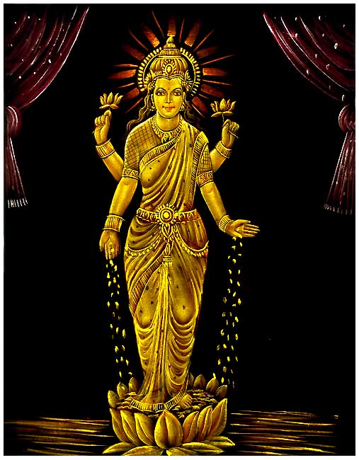The beautiful painting depicts the Goddess of wealth with some greater degree of feminine beauty and gracefulness. Goddess Lakshmi is worshipped for wealth and it is believed that worshipping her gives us lot of wealth and prosperity.