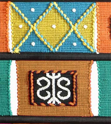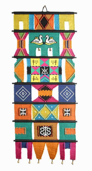 The beautiful wall hanging reveals how a number of dazzling colours could be put together to create a spectacular vision. The beautiful swans, the geometric motifs all have been beautifully embroidered to give rise to a beautiful wall hanging.