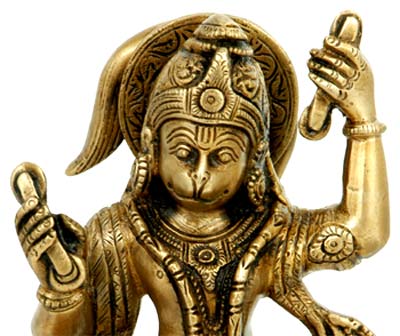 The brass statuette of Rambhakta Hanuman has been chiseled out with greater finesse. The face of this great devotee of Lord Ram is beaming with satisfaction praising his Lord. It is believed that this great devotee of Lord Rama is more delighted to hear the praises of his Lord than that of his own. The statue is an epitome of artistic delight and splendour. The figure has been shown submerged in deep devotion of the Lord.