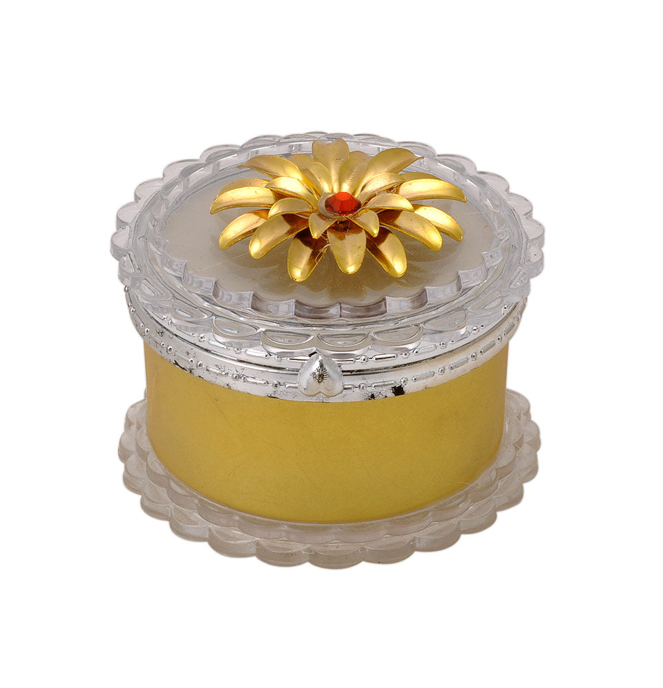 Round Glass Jewelry Box with Golden Flower