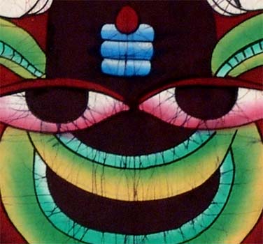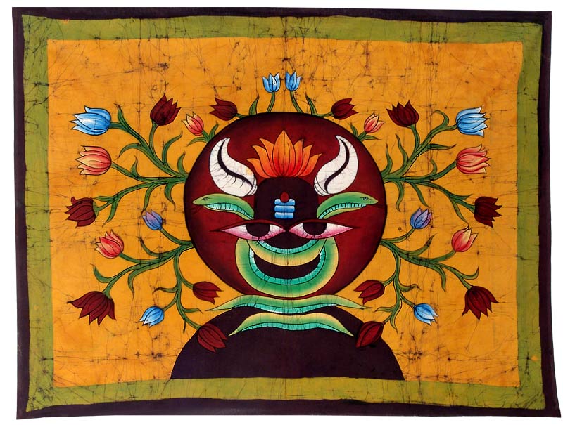 The sensible use of colour gradations has made the painting of Shiva Lingam a very attractive one. Batik is the art of creating images on the cotton cloth using wax resist method. A batik artist needs to have a good sense of colors and patterns. Though the motifs used in batik are simple, knowledge of color gradations and tack to remove wax finely are required. Applying the wax resist and systematic cracking are the key to a beautiful art piece. The method of dewaxing is the key to the splendour and the brightness of the painting.