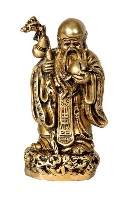 The beautiful brass image of the Chinese God of Longevity has been nicely carved out with a greater sense of refinement and gracefulness. The figure depicts a detail description of traditional long life deity. His name means ‘star of long life’. Old and bald, he always carries a Golden Peach of Immortality from XI-WANGMU's Holy Peach Garden. These are found only in Heaven and ripen once every three thousand years.