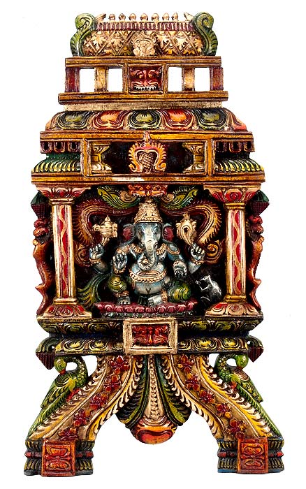 Resplendent wooden panel is given a spectacular treatment with some beautiful floral designs being carved on the panel. The panel has some exquisite designs and foliages that are masterfully crafted with an ingenious mind. Lord Ganesha is one of the most-worshipped gods in Hinduism and he is worshipped first among the gods and he is called Agraganya. Lord Ganesha is also known as the Remover of Obstacles and he removes obstacles from our path following worship .