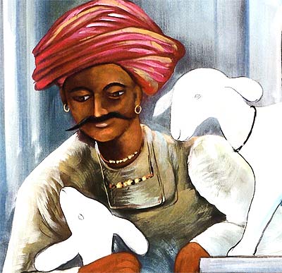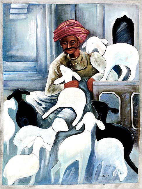 In this beautiful Silk painting an Indian shepherd is nicely painted with natural colors. The shepherd is being painted looking after his herd. A deep sense He is in a happy mode amidst his asses. Indian silk paintings are characterized by its softness, elegance and a flexibility of style. Silk is used as a medium for portraits and paintings since it is very light and soft. Craftsmen use a special process that allows the silk canvas to retain the paint in vibrant detail.