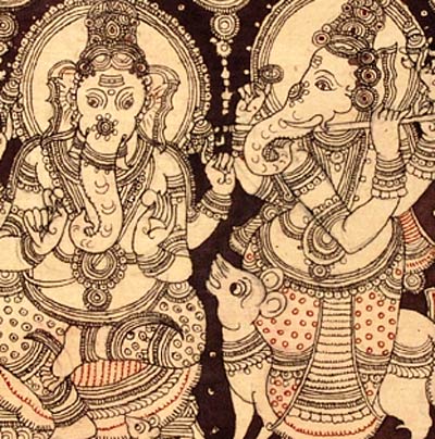 The beautiful Kalamkari painting depicts the Lord in eight different forms. One of the most-worshipped gods in Hinduism, Lord Ganesha is worshipped in various forms. He has eight different forms or Astha Vinayaka. They are Mayureshwar (Moresh) or the peacock rider, who slew the demon Sindhu in response to pleas from the Gods. As Mahaganapati, Ganesha is believed to have come to the aid of Shiva in destroying the citadels of the demon Tripurasura. As Varadvinayak (the bestower of boons), Lord Ganesha is commemorated in a legend related to Rukmangada. Chintamani Vinayak relates to the legend of Kapila Muni and the Chintamani gem that he had obtained from Shiva. Girijaatmaja Vinayaka is enshrined on Lenyadri Parvat, and is believed to be a manifestation of Ganapati as an infant. Vigneshwara is regarded as the slayer of the demon Vignaasura. Ballal Vinayak is associated with a legend where Ganapati is said to have come to the aid of a young lad, who was a fervent devotee of Ganapati. As Siddhi Vinayak, Lord Ganesha is said to have come to the aid of Mahavishnu as he was engaged in a long battle with the demons Madhu and Kaitabha.