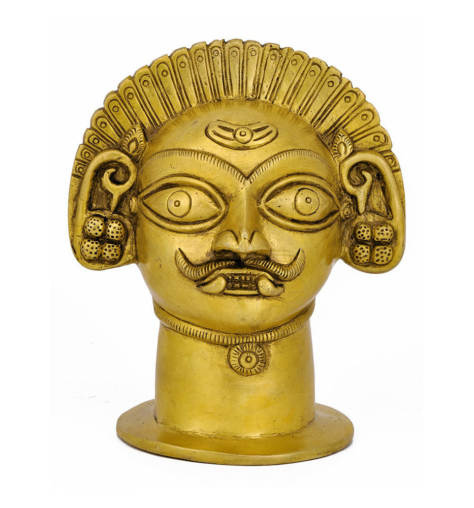 The ferocious brass statue of Bhairav is given a refine and detail touch here. Bhairava is a fierce manifestation of Lord Shiva, one of the Trinity Gods in Hinduism. Lord Shiva is the God who is responsible for the destruction of the universe. But destruction here has a positive aspect as well as destruction is the prelude to a new generation. Here his eyes are bulging and hair is given a detail touch. The face is rough and his teeth are protruding out giving the figure an overall ferocious look.