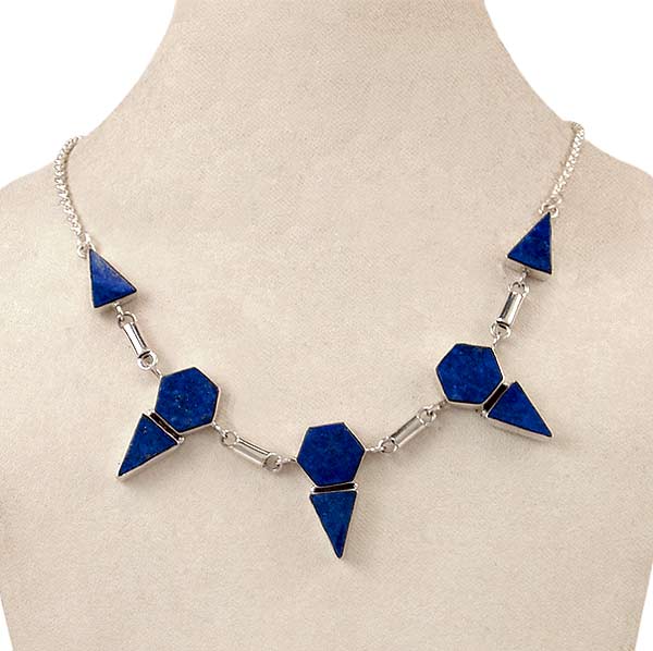 Bathed in sterling silver, the marvelous necklace is finely crafted with the precision of a surgeon. Lapis lazuli is considered as a stone of friendship and truth. The blue stone is said to encourage harmony in relationships and help its wearer to be authentic and give his or her opinion openly.