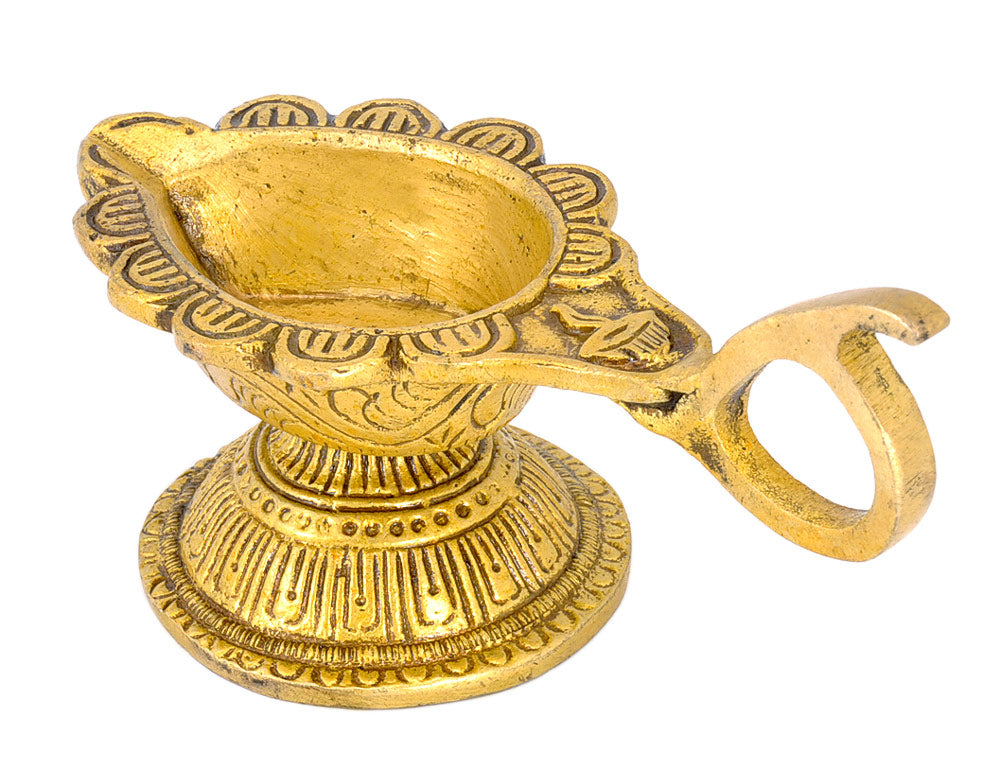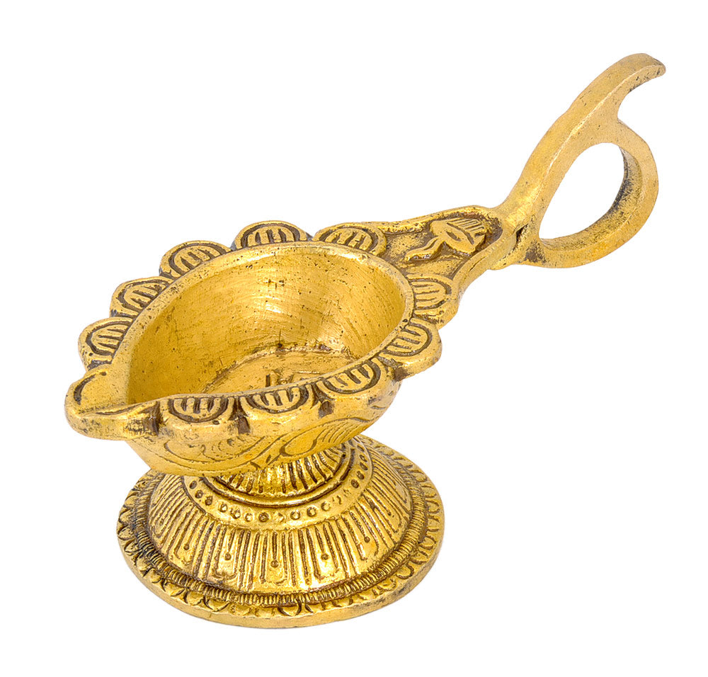 The brass lamp is nicely designed with minute details and smoothness. People consider lighting a lamp or deepam an auspicious task. It is said that lighting a deepam wards off evil spirits from the home. People lit lamps in front of god, some people lit lamps in front of Tulasi. Light symbolises knowledge over darkness, ignorance. The Lord is the Knowledge Principle (chaitanya) who is the source, the enlivener and the illuminator of all knowledge. So, light is worshiped as the Lord himself. Deepam is full of symbolism. It means that if you have faith, you’ll see God. Deepam (lamp) = body, wick = guru, oil = faith, light = God.