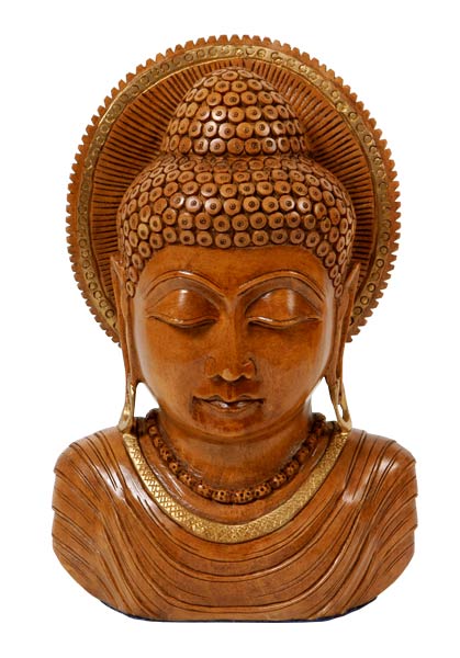 The wooden figure of Lord Buddha in his half closed eyes depicts his meditative mood. His universal panacea for all evils and violence was non-violence. The elongated ears, bangles all have been given prominent treatment. The meditated figure of the Lord is an emblem of peace and truth and he is preaching for universal peace. The enlightened Buddha is the epitome of the ultimate truth and he is the embodiment of non-violence and peace. The simplicity and refine nature of the figure is striking.