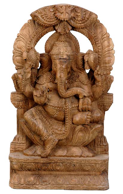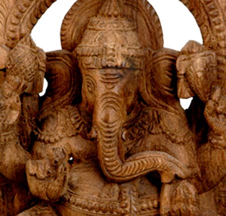 Lord Ganesha, son of Lord Shiva and Parvati, is given a spectacular treatment in the wooden wall hanging. The wooden figure is nicely carved out with the aura of power surrounding his head. Seated in a royal posture, the figure of the Lord of Wisdom depicts a sense of gravity and respect. One of the most benevolent gods in Hinduism, Lord Ganesha is worshipped at the beginning of any ritual and he is one of the most worshipped gods in Hinduism.