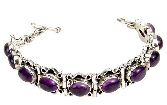 Crafted out of Sterling Silver and Amethyst Stone, the beautiful bracelet gives an impression of elegance and magnificence. If you are going for an evening party, the bracelet will give you an element of superiority and gravity. Amethyst is a kind of quartz and is purple in colour. This gemstone is worn by those born in the moth of February. A popular gemstone, the term 'amethyst' is derived from the Greek and means "not drunken. There is a belief that amethyst would ward off the effects of alcohol. Its color is awesome, and even other, more expensive purple gemstones are often compared to its color and beauty.