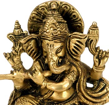Lord Ganesha is the Lord of Wisdom and he is also known as Sumukh or good looking. He is one of the most beautiful gods in Hinduism. He is shown here playing the flute as his vehicle the rat looks on. One of the most popular gods in Hinduism, Lord Ganesha is worshipped at the beginning of any ritual and he is one of the most benevolent gods in Hindu religion.