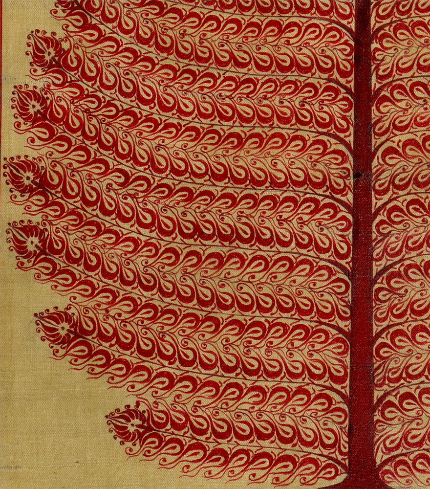 In this beautiful Patta painting, tussar silk is nicely used and a big tree with lot of leaves is painted in traditional patta style. Pattachitra is a traditional painting of Odisha and is based on Hindu mythology and specially inspired by Jagannath and Vaishnava cult. All colours used in the paintings are natural and paintings are made fully old traditional way by Chitrakaras (Oriya painter). Pattachitra style of painting is one of the oldest and most popular art forms of Odisha. The term Pattachitra has evolved from the Sanskrit words patta, meaning canvas, and chitra, meaning picture. Pattachitra is thus a painting done on canvas, and is manifested by rich colourful application, creative motifs and designs, and portrayal of simple themes, mostly mythological in depiction. The painting the 'pattachitra' resemble the old murals of Odisha especially religious centres of Puri, Konark and Bhubaneshwar region, dating back to the 5th century BC. The hub of this genre of artwork is in and around Puri, especially in the village of Raghurajpur.