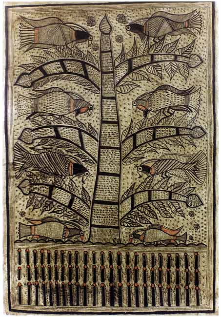 Nature has been always a favourite topic for the Mithila painters,away from the hectic schedules of urban living styles,Madhubani people enjoyes the simple living style of the village which reflects in their works.