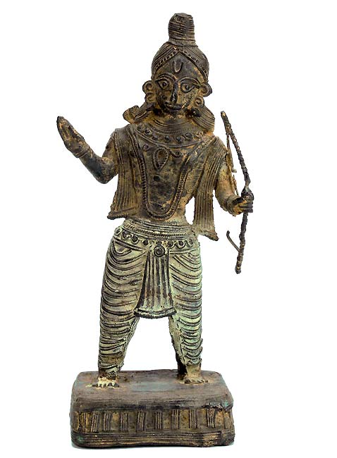 The beautiful brass figure of Lord Ramchandra, one of the most popular Hindu deities and hero of the Great Indian Epic Ramayana, a refine and detail touch. Lord Ramchandra is also a popular deity for the tribal populace in North India and he is revered widely by the tribal people. Dhokra is an ancient technique and it is an attempt on the part of the tribal people of Bihar, Orissa and North Bengal to preserve their cultural traits through the medium of craft.