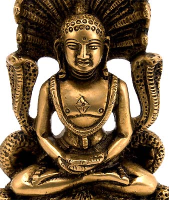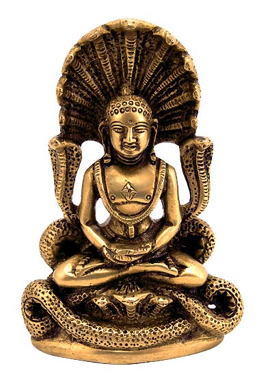The beautiful brass figure of the 23 Tirthankara Shri Parsvanath is given a spectacular treatment with some exquisite carvings. Here the figure is covered with the hood of a snake shading his head. Lord Parsvanath was a historical figure, who was believed to have lived 250 years before the last Tirthankara Bhagwan Mahavira. Lord Parsvanath led a luxurious life, but he was never attracted to material world. Having led family life for thirty years, Parsvanath left his domestic life at the age of 30. After three months of deep meditation and penance, Parsvanath attained Kevala-jnana. He spent the remaining life as a religious teacher spreading the message of Jainism for about 70 years. Parsvanath followed, the path of Ahimsa and respect for truth (Dharma) vigorously and they later became the social values of the time. People worshipped him as Bhagwan (God). Bhagwan Parsvanath introduced Chaturyam Dharma (four vows) for the disciples and followers. These are Ahimsa (non-violence), Satyavachan (abstinence from telling lies), Achaurya-Tyag (abstinence from stealing or taking what is not given) and Aparigraha (non-possession of property). To these, Mahavira added the fifth vow (Brahamcharya), viz. Sanyama i.e. to observe chastity.
